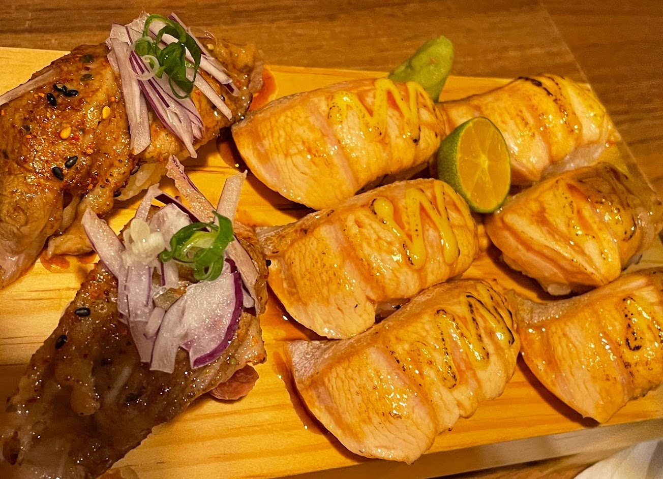 新鮮好吃,夠水準!但位置真的很少,多人用餐要等。最近點餐外帶也是一樣好吃,味道真的很棒,最喜歡炸蝦壽司,炙燒鮭魚壽司,和 唐洋雞!!讚