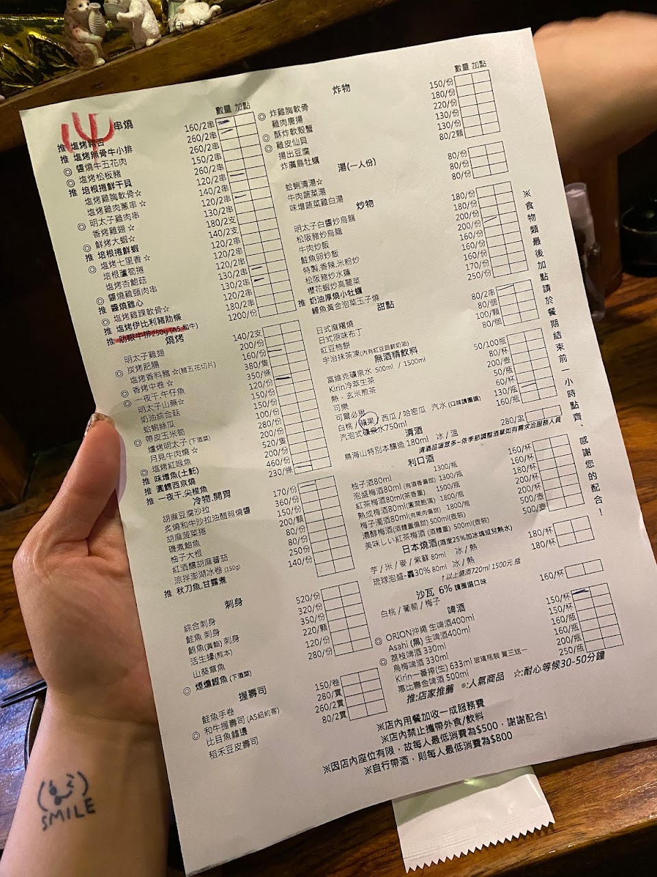 一夜干還不錯,但牛肉串很硬,低消$500。
