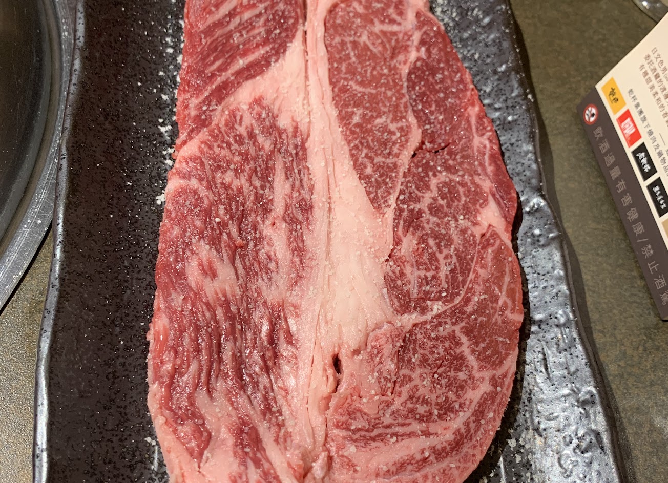 我們共點了兩塊現切牛排。一塊現切牛排價值一千元 (兩份現切牛排就價值兩千元),因為後來第二份現切牛排吃不完,我們想要帶走,想要回家晚餐再加熱吃,但店家就說必須要煮熟才可以帶走,不然就不可以帶走。這是第一個讓我們傻眼的地方,因為一開始都沒有人跟我們這樣說明。