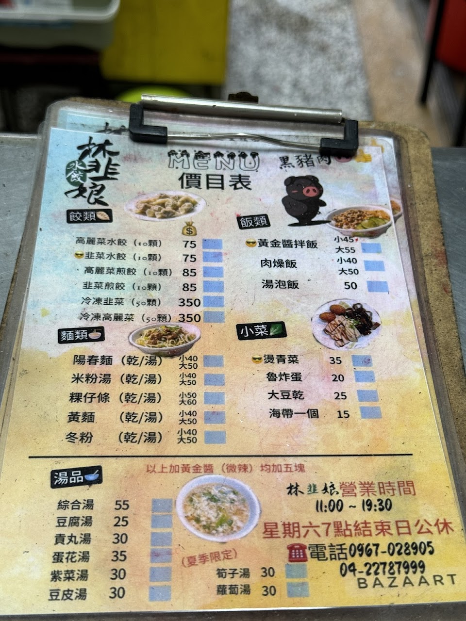 韭菜煎餃 韭菜水餃 綜合湯 黃金醬肉燥拌飯 滷炸蛋 菜頭湯 黃金醬拌飯 貢丸湯