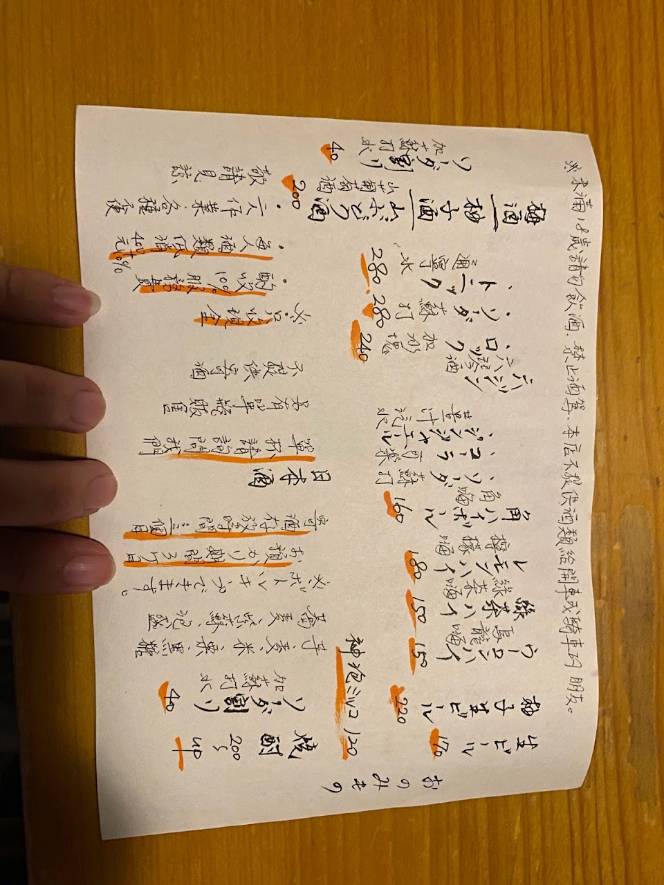 主要販售日式酒類,燒酒、角嗨、Highball、梅酒、柚子酒、日本酒等等的