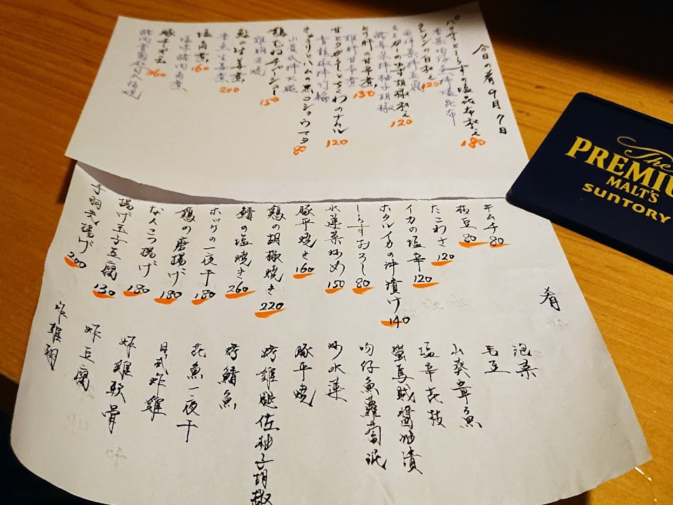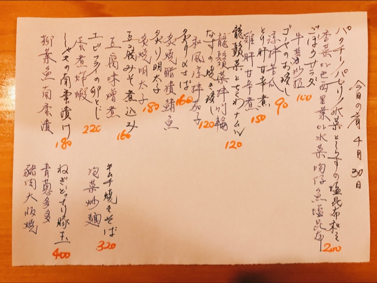 非常日式的家庭料理居酒屋,座位不多,不接受超過三人的訂位,大部分餐點都是下酒菜,來這裡就是得喝酒配菜才對。人均視酒量而定,正常一人點兩三個小菜兩杯啤酒大概NT1000有找。