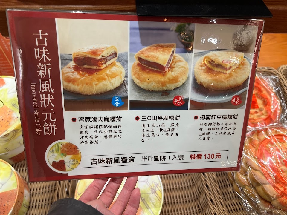太陽餅聯翔的創新做法不輸百年老店好吃。其它諸如各色麵包也算價格公道種類繁多新鮮好吃。蛋糕也算是很有誠意尤其芋泥真的很給力,羅頌麵包價格高了一點。其它小餅乾糖果真的都很不錯,說實話啦就差店員那一點點親和力。