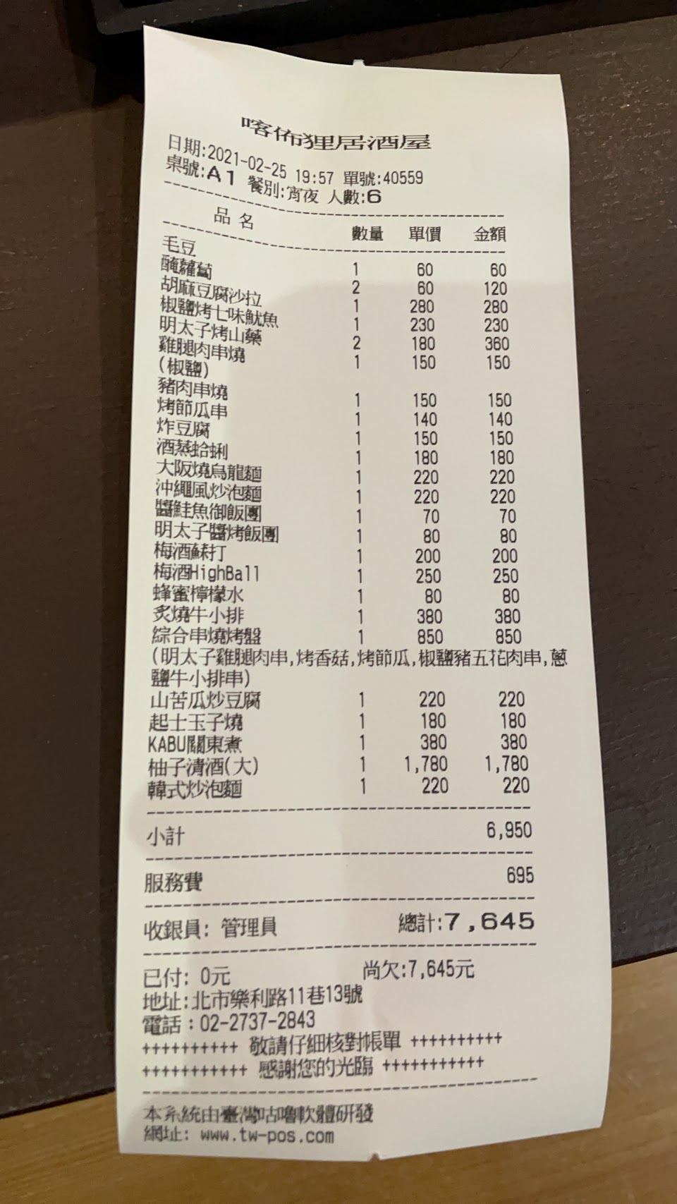 平常日的晚上客人數不多,內外場加結帳只有老闆一個人,但有兩個樓層,若來客數多好奇老闆怎麼處理的XD