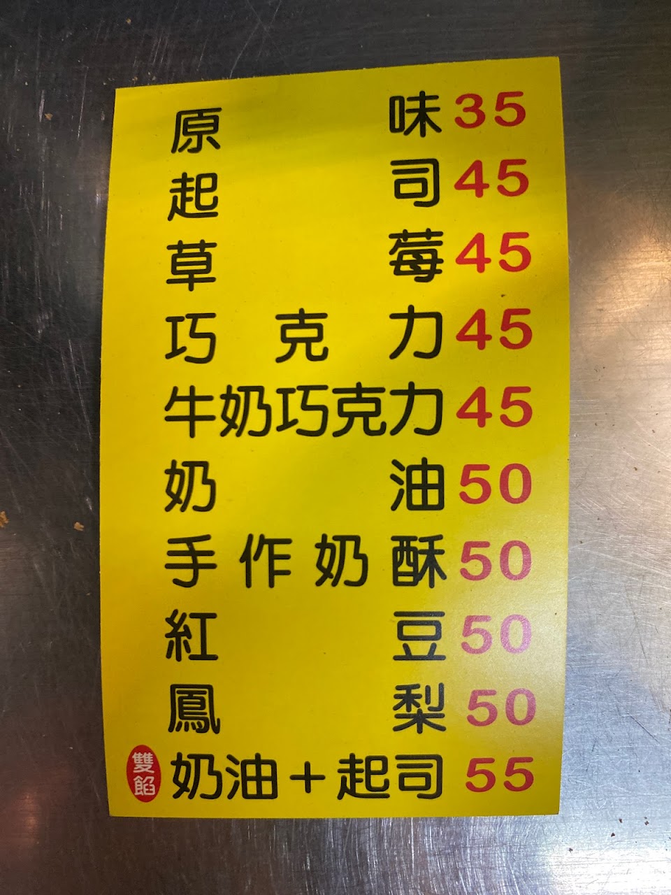 太平菜市場中山路上「包餡」脆皮雞蛋糕,直接榮登我心目中第一名好吃雞蛋糕!店家現點現烤雞蛋糕,雞蛋糕本體蠻大的,餡料也實在不甜膩,推薦奶酥及雙餡(奶油+起司)口味,必點奶酥口味,奶酥內餡吃起來不是外面一般市售的便宜甜膩的奶酥,反而是帶有奶香滑順口感,絕對是奶酥控的最愛。雙餡(奶油+起司)口味也推薦,一樣不甜膩,融合奶油的香甜與起司的鹹香,表現也不遜色。建議一定要趁熱吃,吃的到脆皮口感!涼掉雞蛋糕會變乾,減低原本好吃的風味。