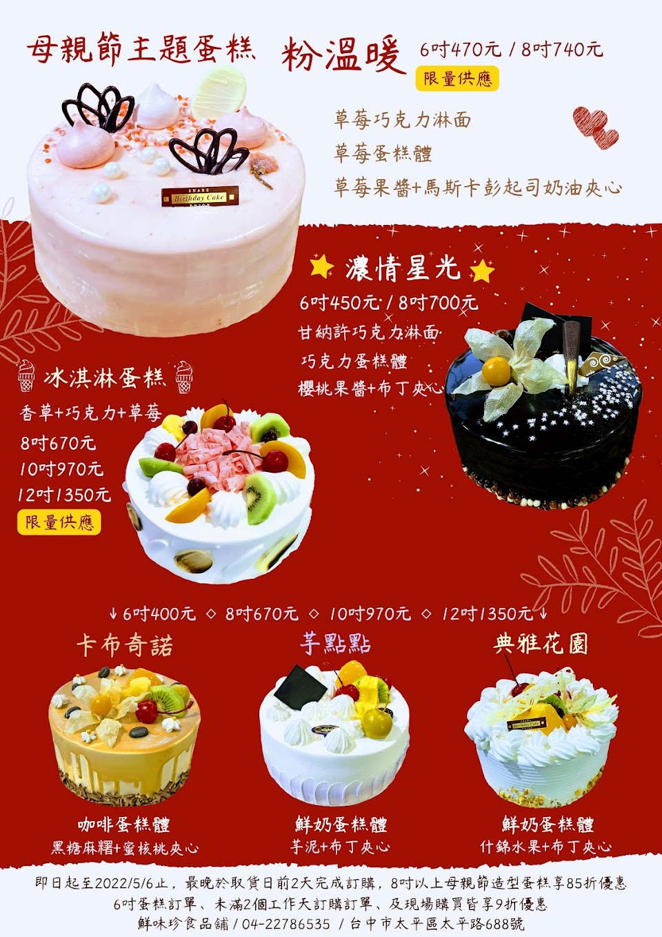 糕餅類產品、式樣多、品質新鮮、服務快速親切