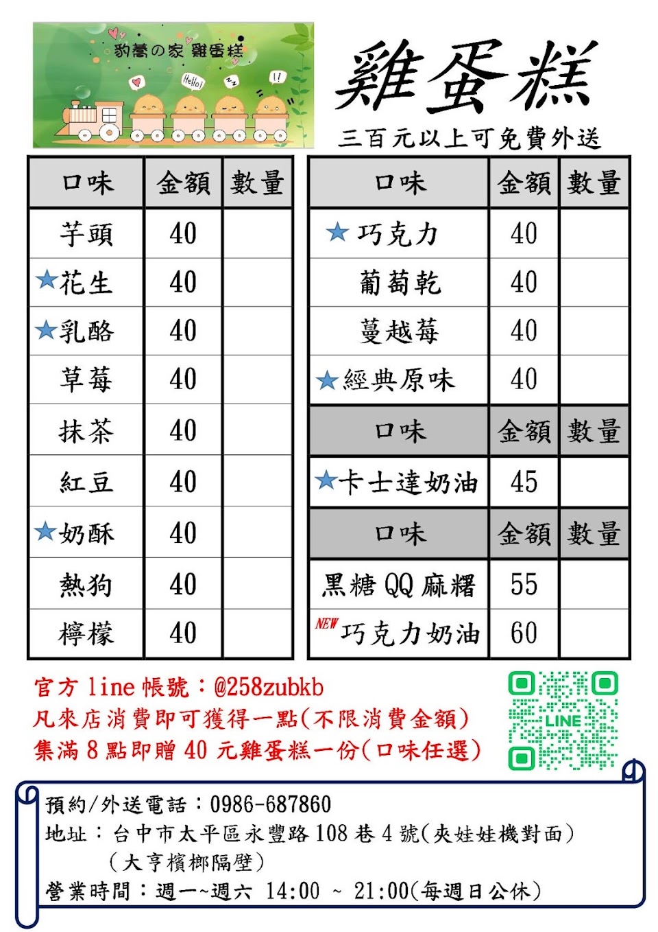 2024最新在地推薦餐廳的菜單_豹蕎的家 雞蛋糕&章魚燒的菜單、圖片