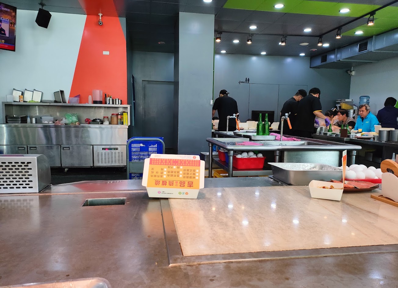 但是這邊是要到櫃檯 那沒關係 講的時候我就看櫃檯在哪(剛好有煎檯的人擋住櫃檯)結果我就聽到 負責在右手邊在裝餐盒的服務員小聲在唸