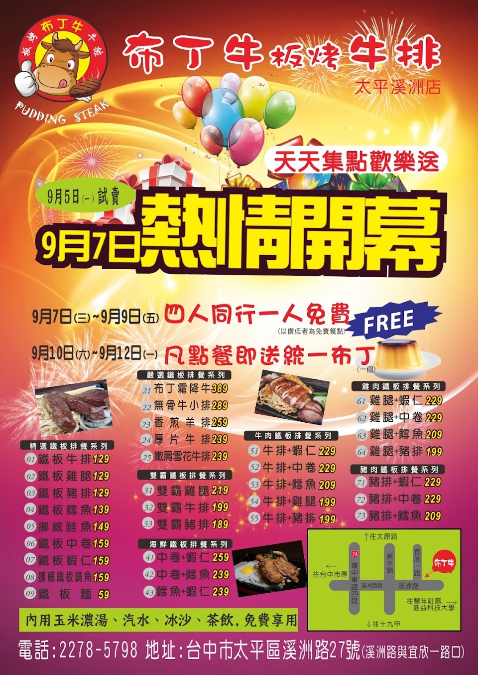 2024最新在地推薦餐廳的菜單_布丁牛板烤太平溪洲店的菜單、圖片