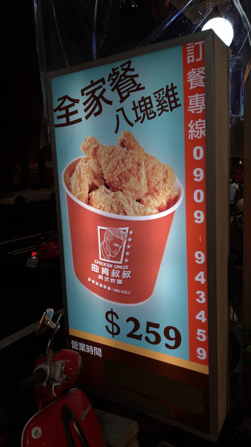 散步過去,點了一份原味雞排跟甜不辣,坐在櫃檯前等,等待期間許多客人來來去去,顯示生意真的不錯?,大約10分鐘左右,拿到餐,我們就在門口吃了起來,雞排外面裹的炸粉真的很好吃,有一片片的感覺,酥酥脆脆不會過硬,吃到骨頭附近可明顯感受它的多汁!炸好趁熱吃感覺美味不油膩,甜不辣炸的澎澎的,外酥內軟,口感是我喜歡的,店家炸功了得!更重要的是,價格很合理!不會太貴!很美味的美式炸雞店!
