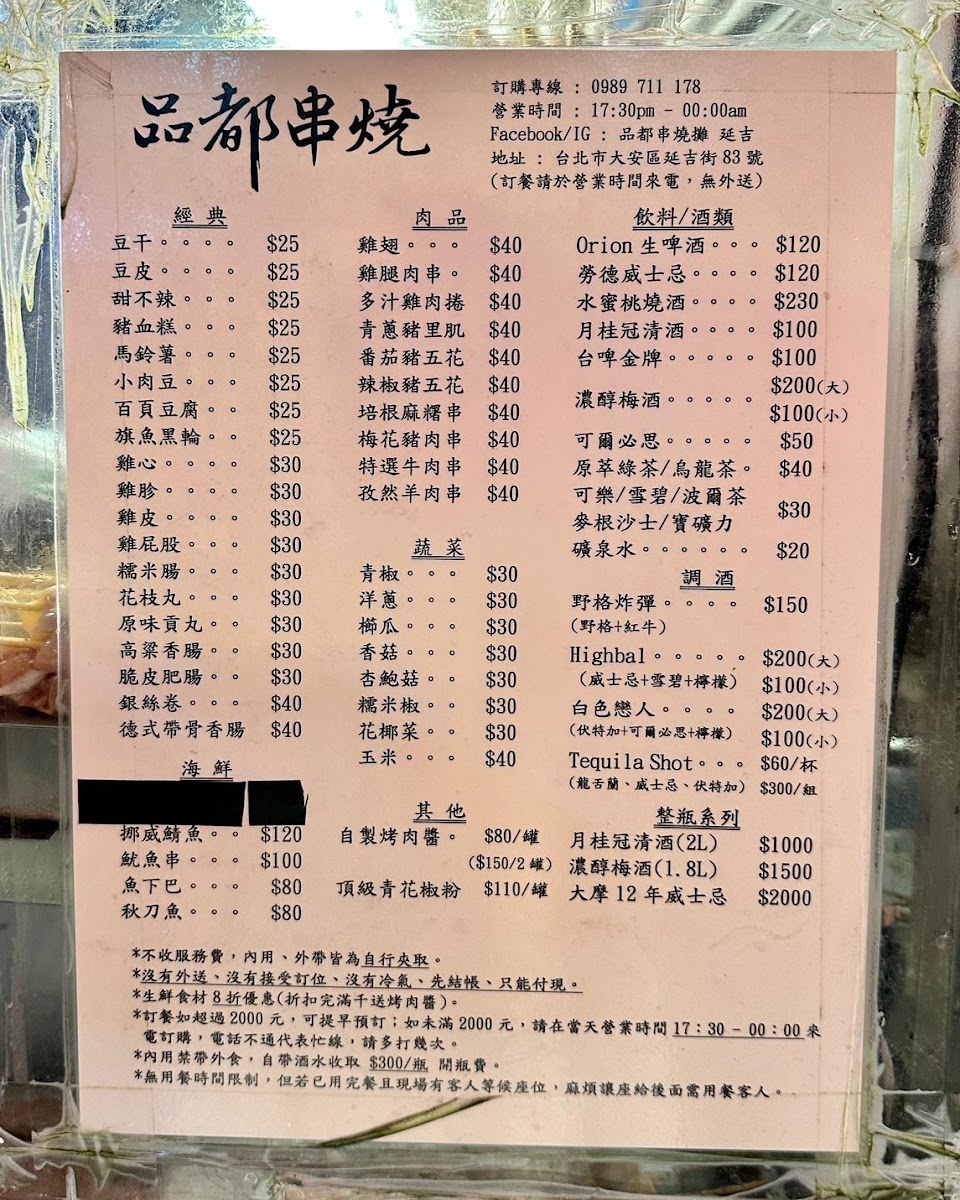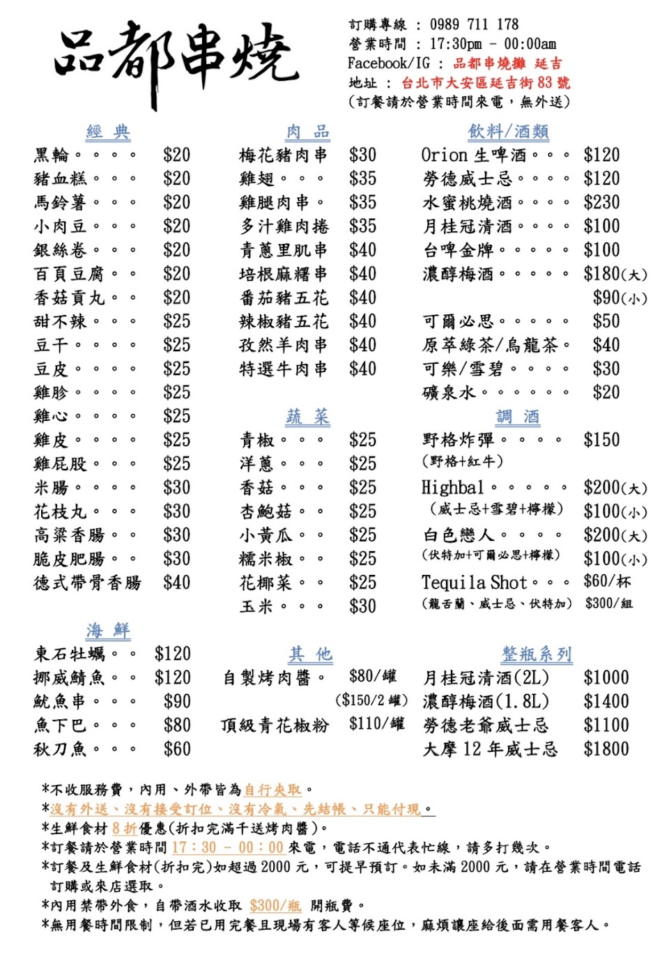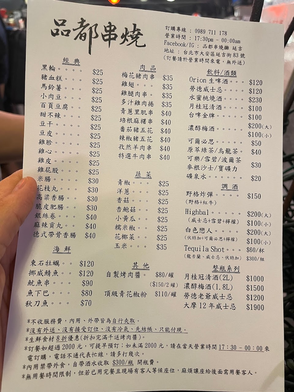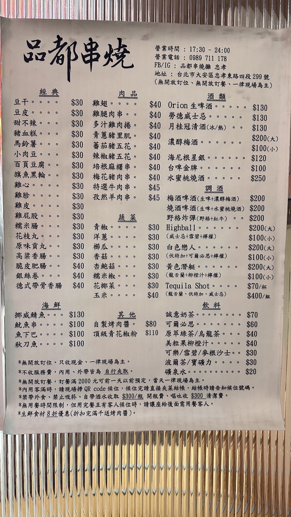 2024最新在地推薦餐廳的菜單_品都串燒攤 延吉的菜單、圖片