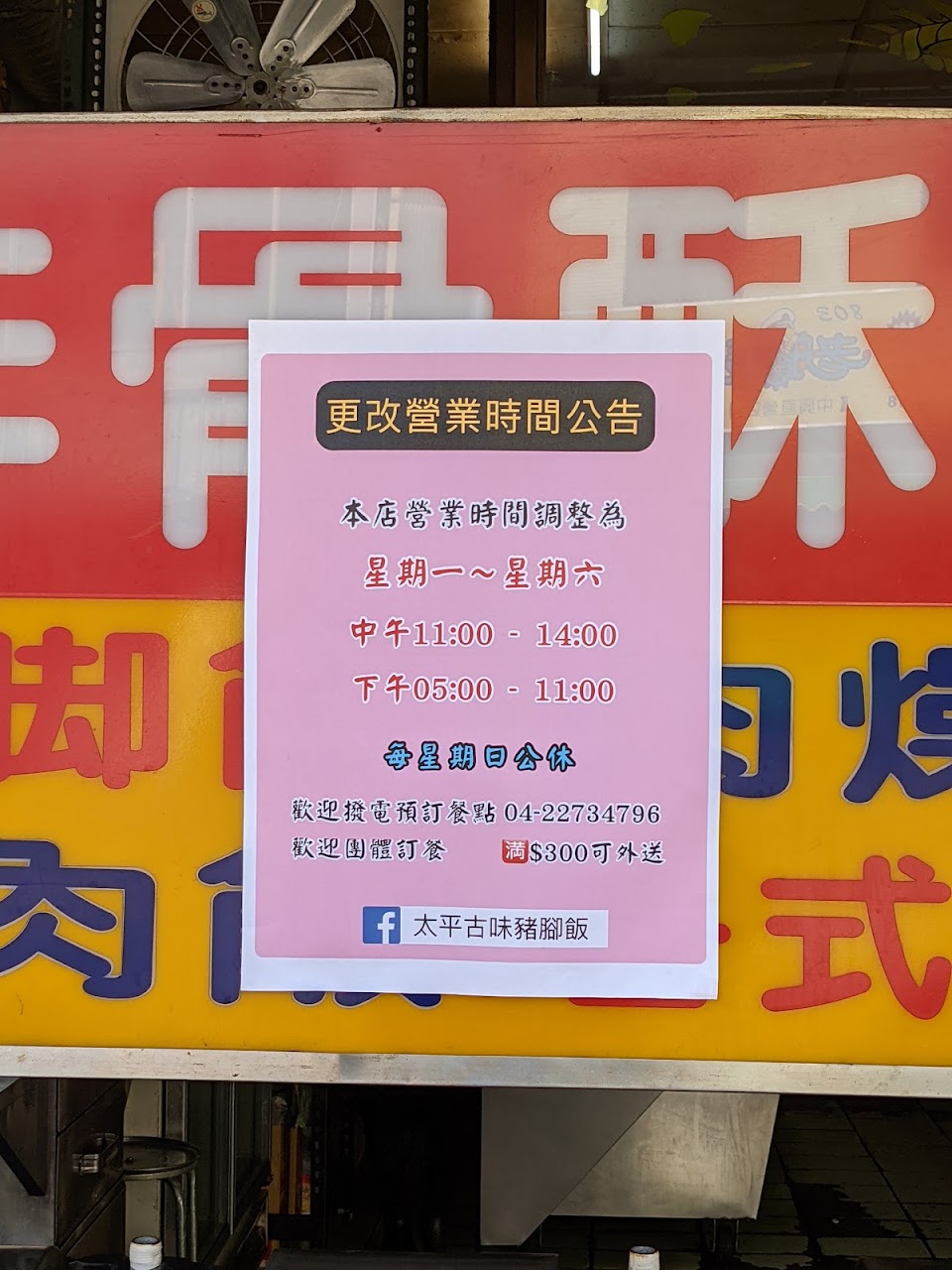 2024最新在地推薦餐廳的菜單_太平古味豬腳飯的菜單、圖片