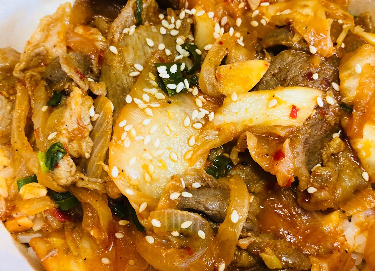烤肉飯好吃泡菜配料很搭!