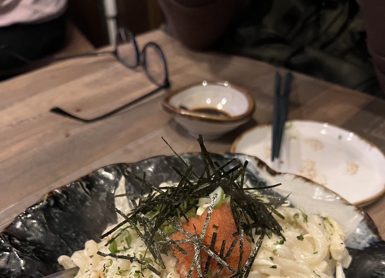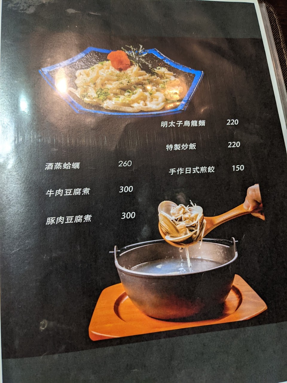 明太子奶油烏龍麵、手工自製煎餃、現烤午仔、烤鮭魚頭、豚平燒及老闆推薦的含果泥梅酒,令人回味再三?