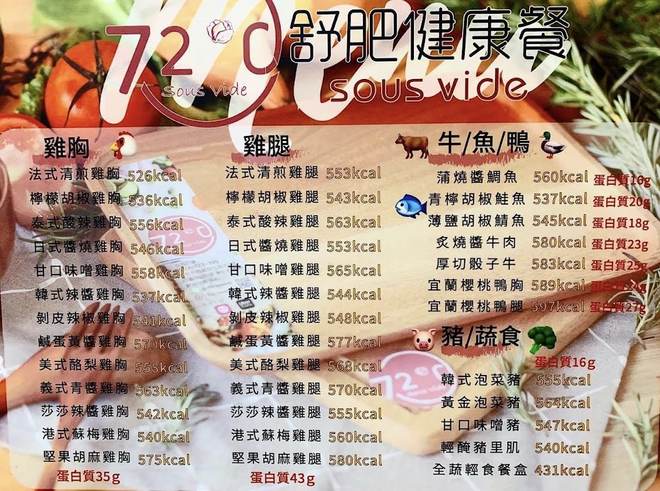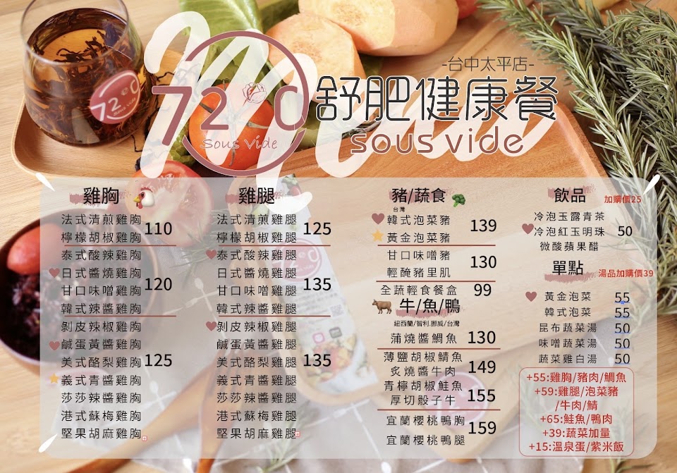 2024最新在地推薦餐廳的菜單_72度C舒肥健康餐/水煮餐 太平店|團體訂餐的菜單、圖片