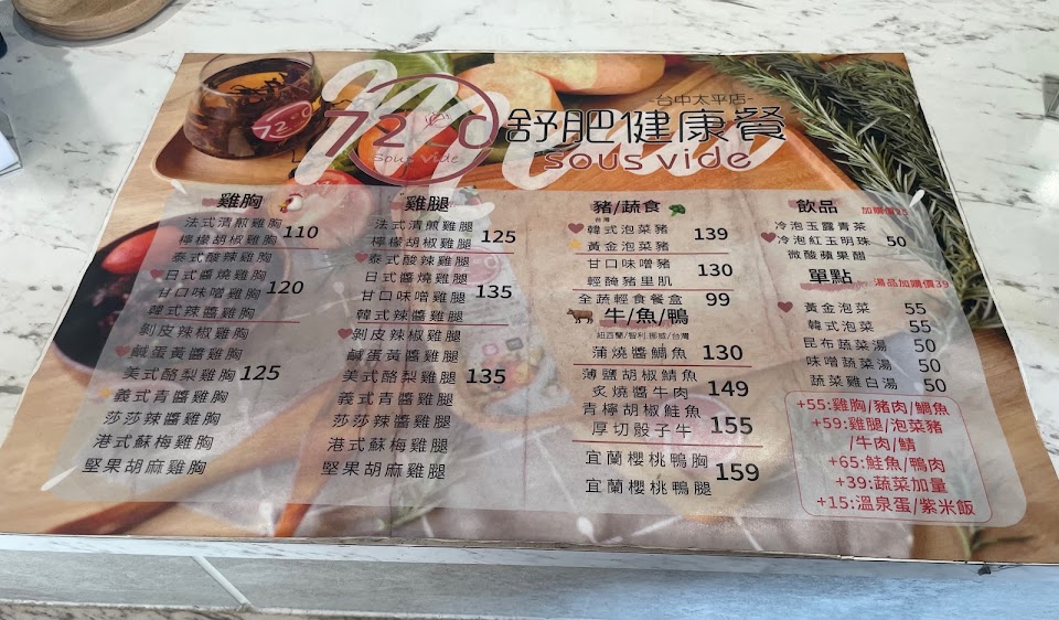 2024最新在地推薦餐廳的菜單_72度C舒肥健康餐/水煮餐 太平店|團體訂餐的菜單、圖片