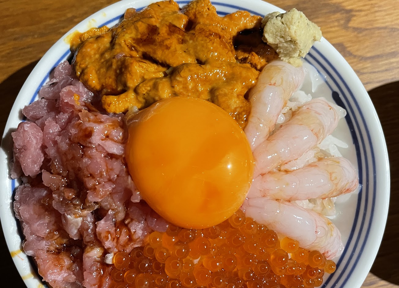 鮪魚泥、海膽、鮭魚卵、甜蝦