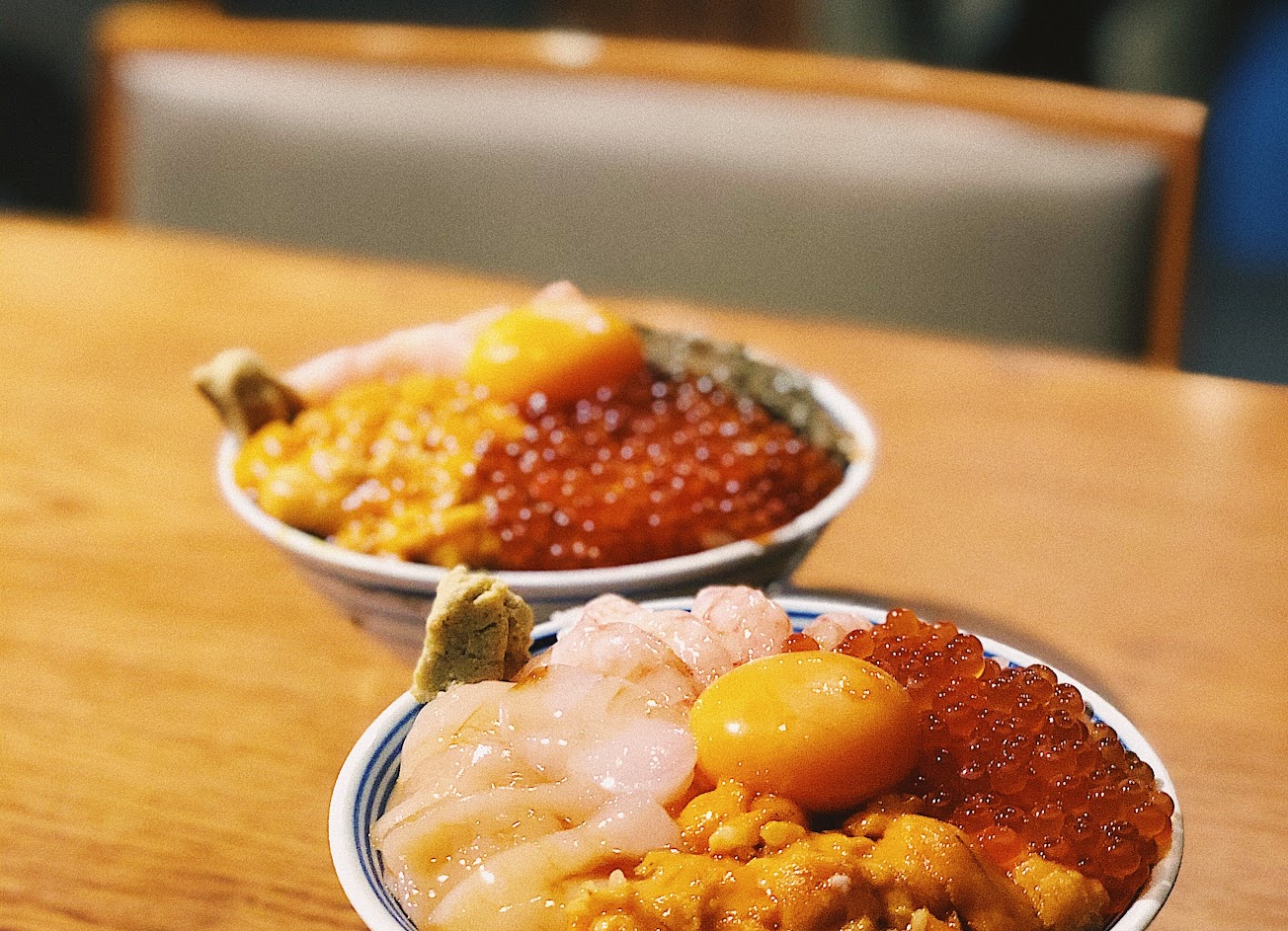 在ig上滑 #國館美食 找到的餐廳 到了現場更是興奮到不行 本來因為沒訂位差點撲空(真的是夯店)…在痛苦哀嚎的時候店員說那不然幫你問問那桌的客人願不願意讓我們併桌 後來就成了!超感謝他們的?點了四色丼(580元)把鮪魚泥換成了干貝?我朋友換蟹膏(皆需+40)店員說那天的海膽是什麼…從日本來的(有點忘了)比較好的 所以只要有海膽的料理都要再加80 於是我的四色丼直接升級成一碗700? 所有海鮮都好新鮮 好好吃 加上生蛋黃整個100分 醋飯也好夠味?超適合搭配啤酒或角嗨? 飯後店員還請我跟我朋友喝彈珠汽水!超開心的❤️食物好吃就算了店員又友善到不行? 雙重讚!一級棒 超級推到爆 這次沒點到生蠔 下次會再來吃爆!