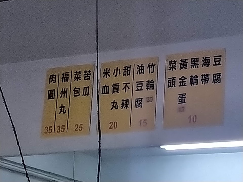 必點蘿蔔(是帶有醬色的紅燒蘿蔔)、阿給(油豆腐鑲魚漿肉)、高麗菜捲、大貢丸(裡面包肉)。湯可以續。