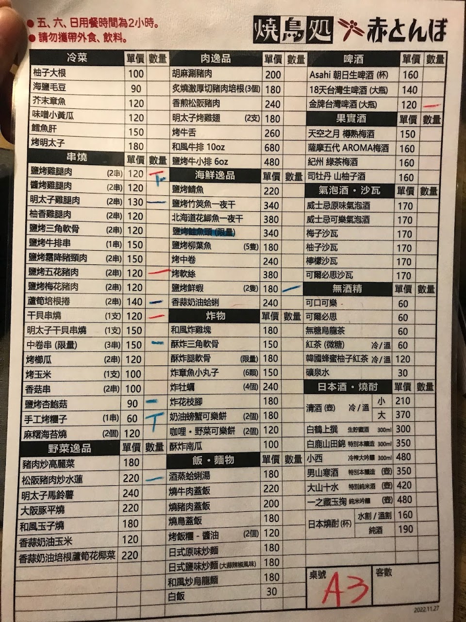 五點一開店就很快客滿,不過流動很快可以先登記再到附近逛逛,大概一小時內就可以輪到~菜色很道地日本居酒屋,很適合小酌