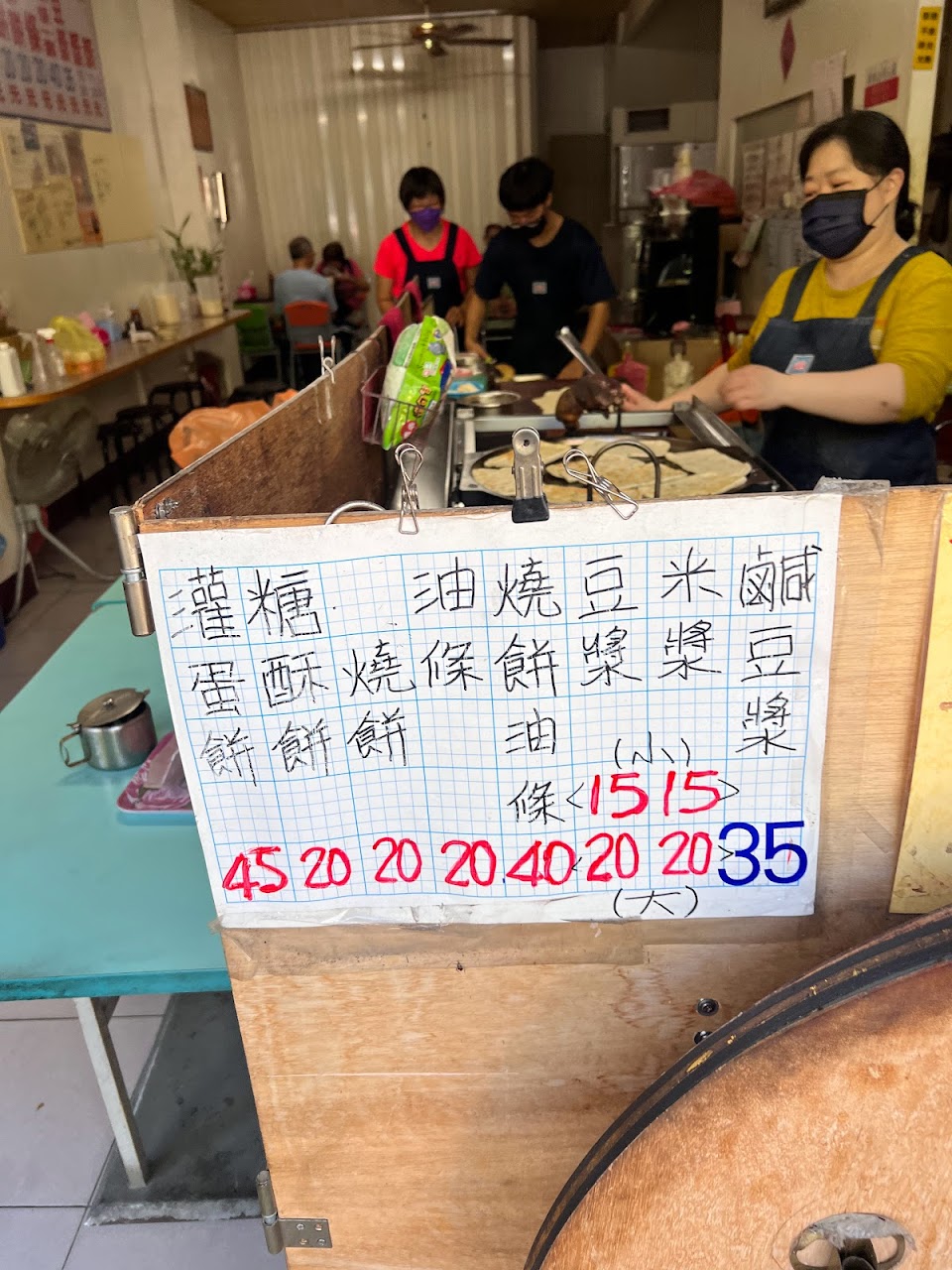 灌蛋餅 甜燒餅 鹹豆漿 米漿 ,都是傳統味道非常紮實,假日都要提早去預約才有得吃,現場可以看繁複又用心的製作過程