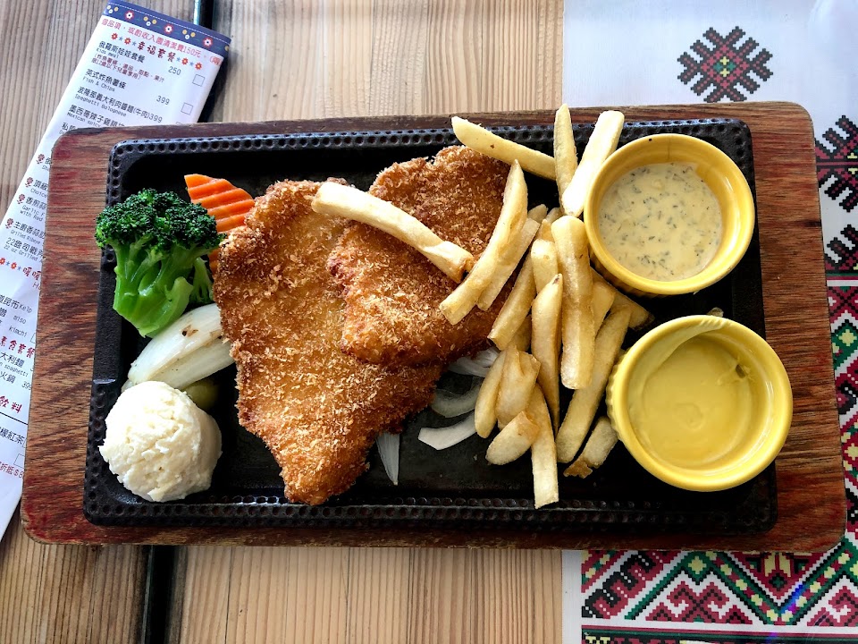 變質了點來牛排799肉是肥油鐵盤是泠的餐具也沒有多要跟服務生要只注意客人吃完了趕快收餐具