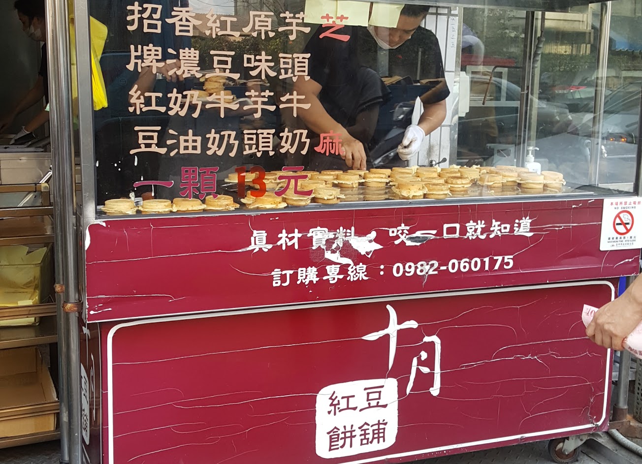 十月紅豆餅,位於東勢區三民街,東崎街的路口小攤位,口味多種,凡舉奶油芝麻芋頭紅豆,主要是外皮酥,內嫩,甜又不膩.時常需要排隊,大部分客人都會難新等候,因位於路口,前往停車需注意安全