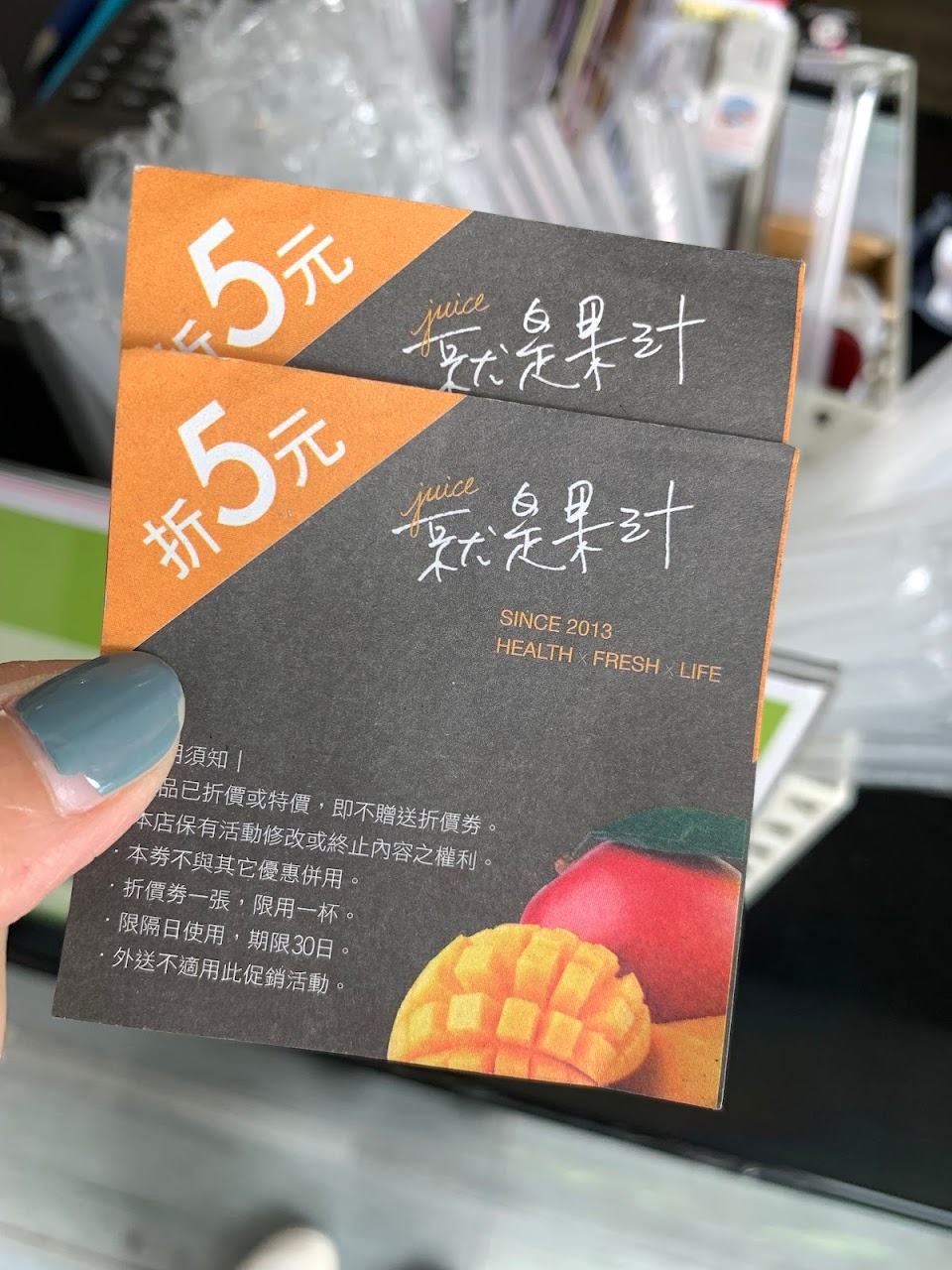 奇異果味道很水不過45塊而已喝止嘴乾還不錯還有給下次使用的五塊折價券,還行