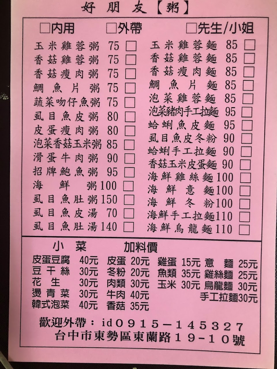 2024最新在地推薦餐廳的菜單_好朋友《粥》的菜單、圖片