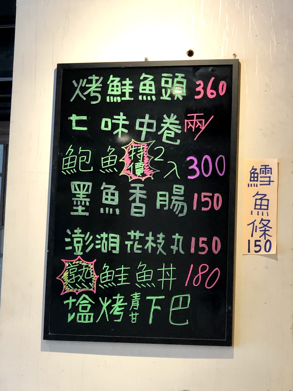 黑板上有菜單上沒有的當日推薦鮮魚貨,也可以參考!
