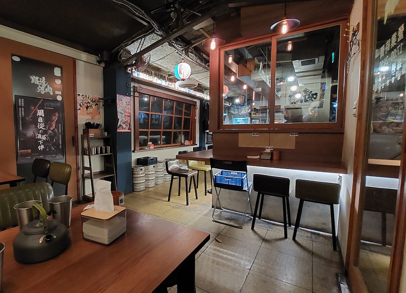 很棒的是,店家將整個開放式廚房區完全的隔起來(用透明玻璃窗),來之前可能想說這種串燒小居酒屋,多少帶有一些油煙味,但完全沒有。所以要加點或者是請他拿什麼東西來,得走到店的外面,給他烤串的那個窗口跟他說,所以在店裡面其實是沒有辦法跟店員講話的。