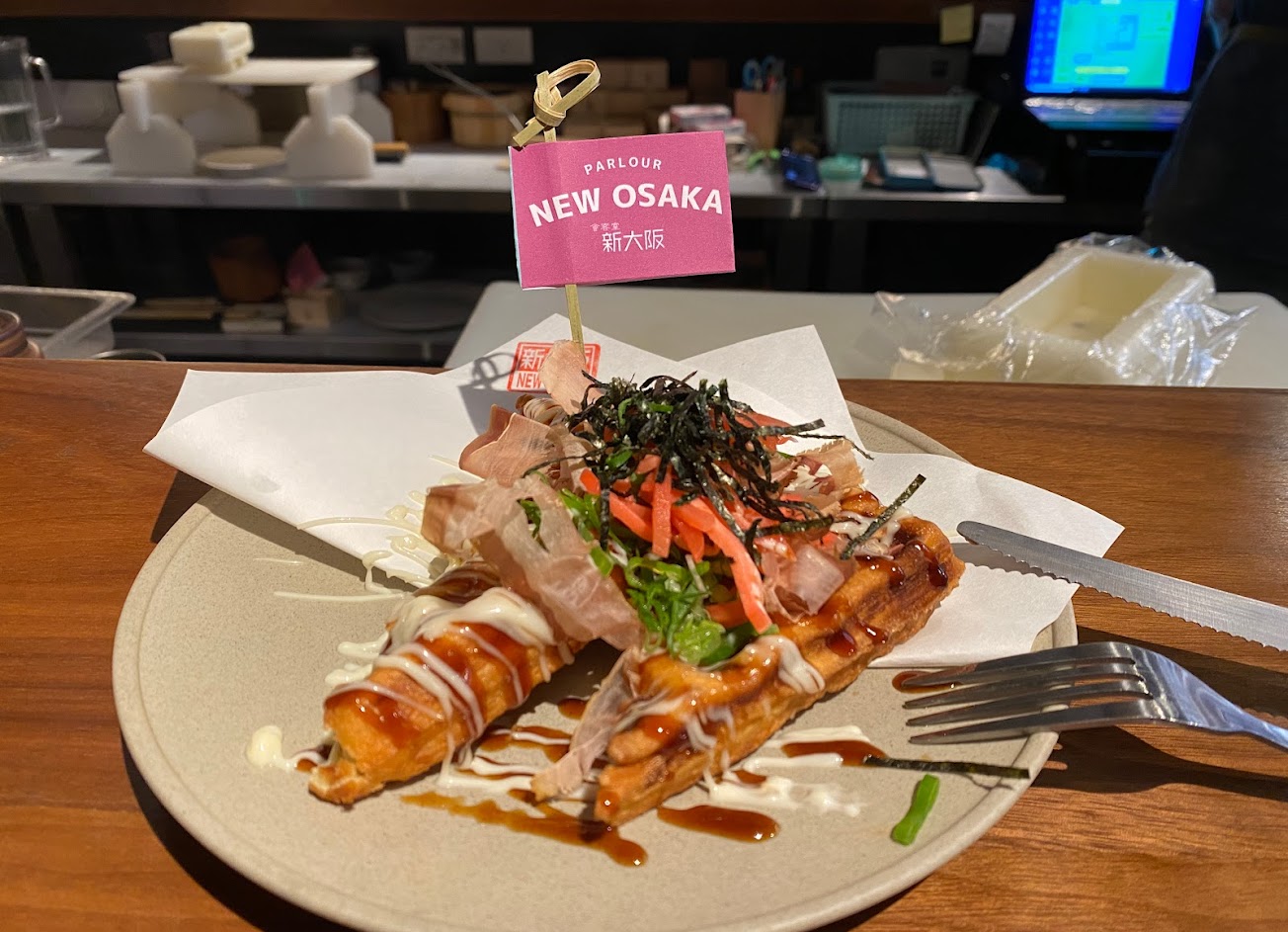 3.點了炒烏龍麵、大阪燒(鬆餅)、大阪炸串、梅酒、薑汁啤酒,大阪炸串真的怎麼點怎麼好吃,麵衣薄脆不油膩,食材新鮮好吃,蔬菜的脆度也有保存下來。薑汁啤酒的薑汁是店家自己製作的,單喝相當更提升了啤酒的風味,配上大阪炸串真的相當適合!不小心就喝了兩杯以及續點的幾串大阪炸串。
