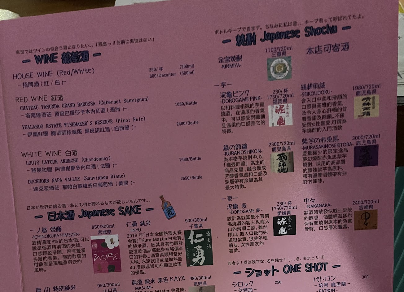 是個很有趣的地方,這裡的氛圍充滿著濃濃的昭和風,店裡播放的音樂幾乎是小時候常常聽到的日本連續劇的主題曲,或者是港台歌手有翻唱過的歌,每一首都令人懷念,店裡的裝潢元素也非常的有趣,不管是任天堂紅白機,電玩小精靈的裝飾,擺放在牆上的宮澤理惠的寫真集,九零年代的偶像照片,六七年級生應該都會很,料理的話,以居酒屋常見的菜色為主,東西味道都不錯,但我個人喜歡他們店裡的氛圍大過食物的料理,是個很適合一群朋友坐著邊吃邊聊邊喝酒的好地方。