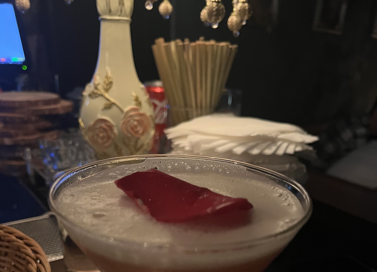 店家用乾燥的玫瑰花放在調酒上做裝飾
