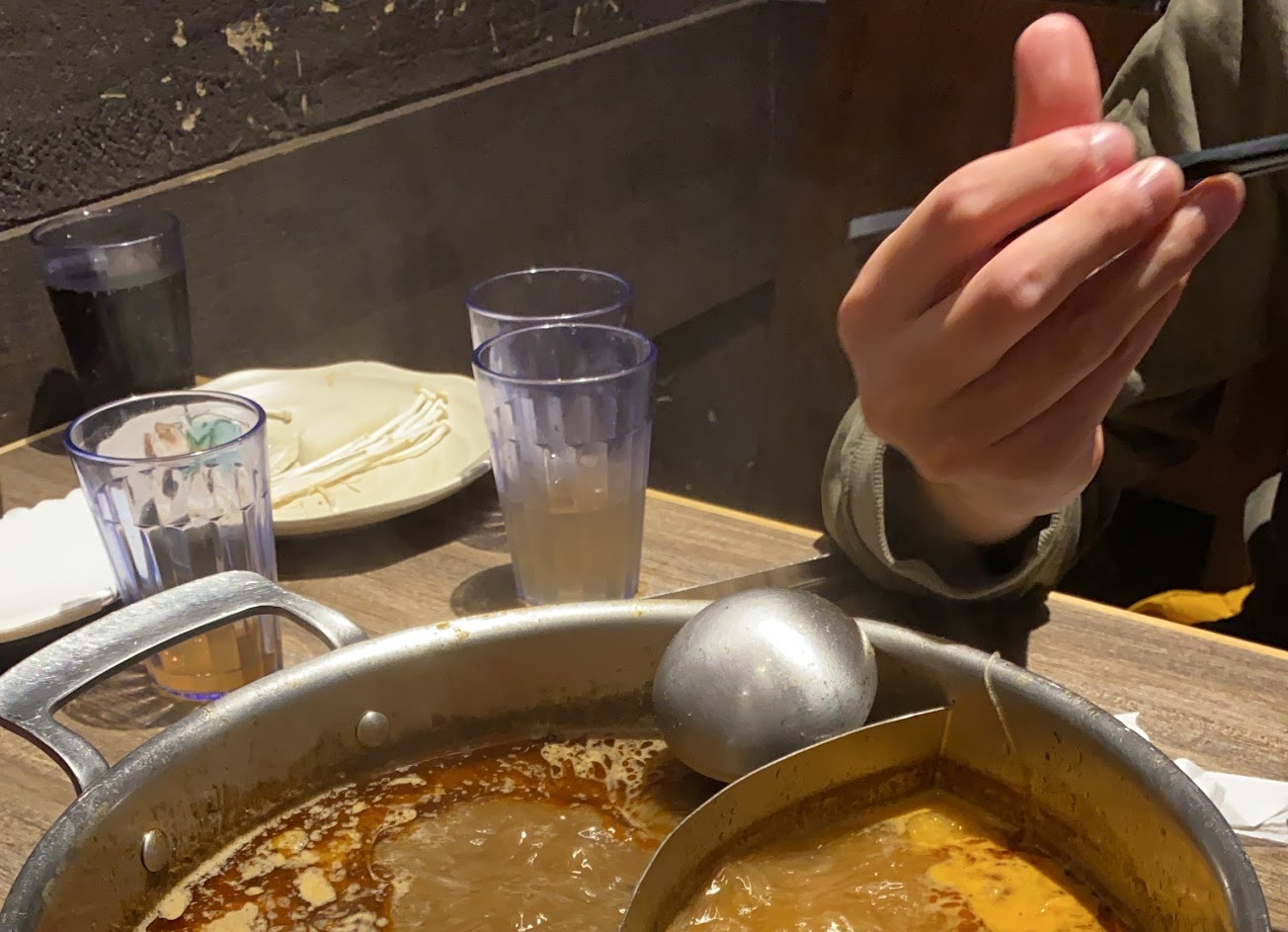 鴛鴦鍋選兩種鍋底,麻辣鍋很香,只是花椒粒是散煮在鍋子裡,吃的時候要稍微注意一下,很容易連著食材一起夾起,吃到嘴裡會有沙沙的口感。