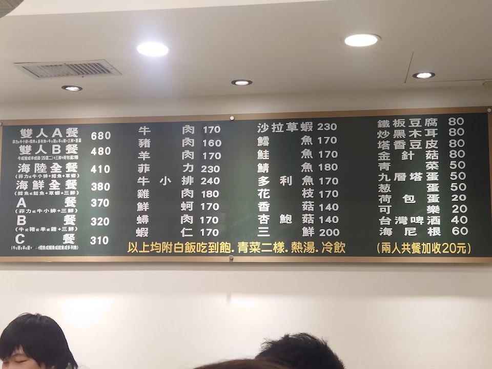 以前有吃過別間分店覺得普普通通、所以這次進來原本沒有抱著奪好吃的心情進來??? 沒想到~讓我覺得驚艷、我是點410的海陸全餐、說真的以平價鐵板燒來說真的很便宜、裡面有一道菲力我以為是用煎的、結果原來是用炒的、原本以為會很硬、結果意外的軟嫩、其他的菜也都很合我的口味很下飯 而且今天都是女師傅在炒覺得很酷 很推~下次有來還會想再來吃 服務 內用 餐點類型 晚餐 平均每人消費金額 $200-400