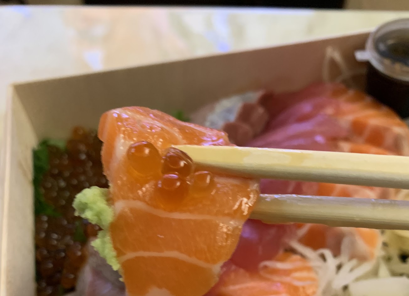生魚片500$ 份量很足品質也不錯 還有滿滿鮭魚卵