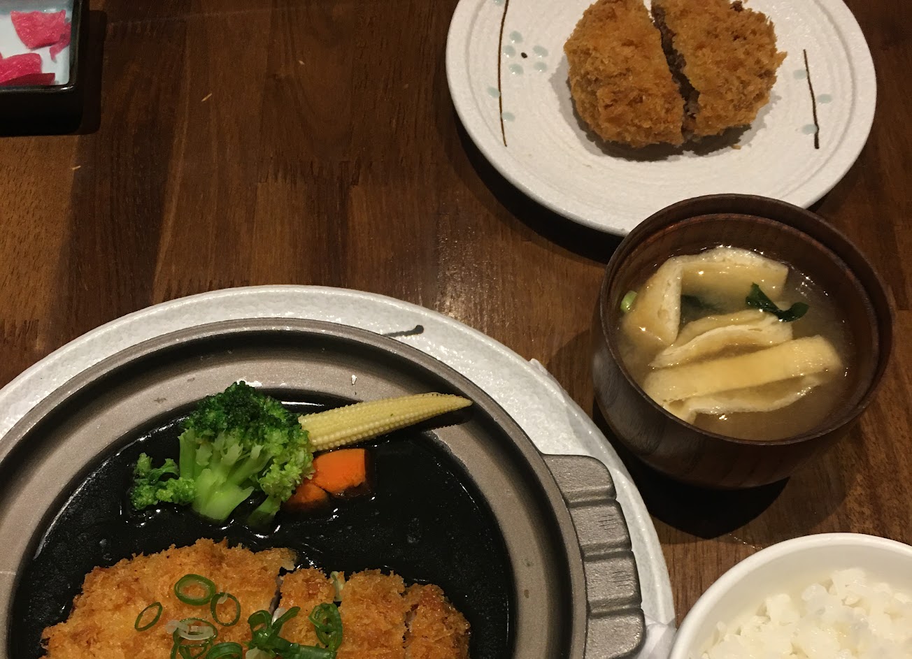 點了招牌千層起司豬排、背脊肉(大)。 來用餐的時間已經是第2輪非首要餐期。店內人潮還可以。但整個服務有待加強。茶水續加都沒巡。 味增湯也是講了2次才拿來。 應該是整個教育不完善。工作站沒分配⋯空等滿久的⋯⋯⋯