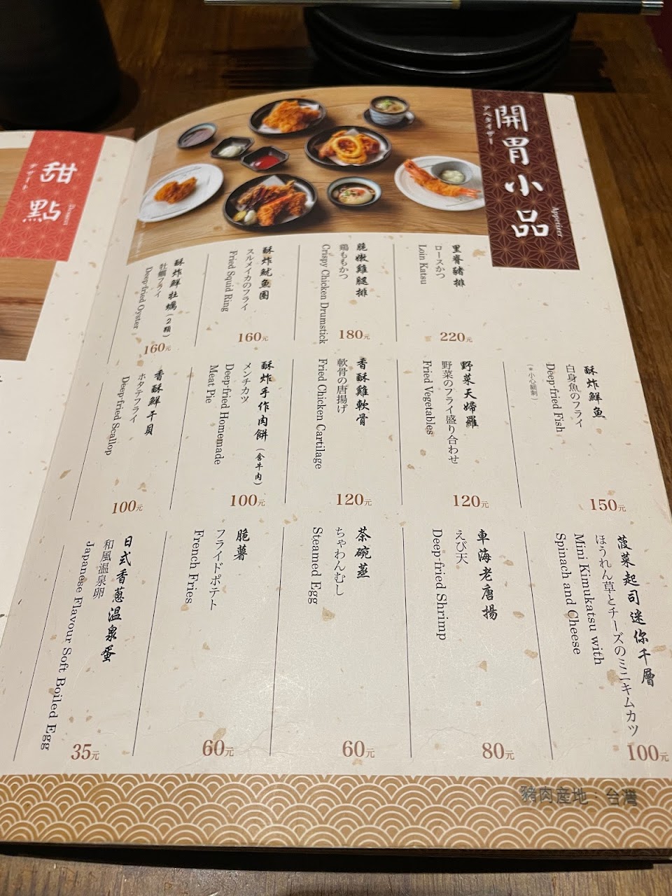 點了招牌千層起司豬排、背脊肉(大)。
