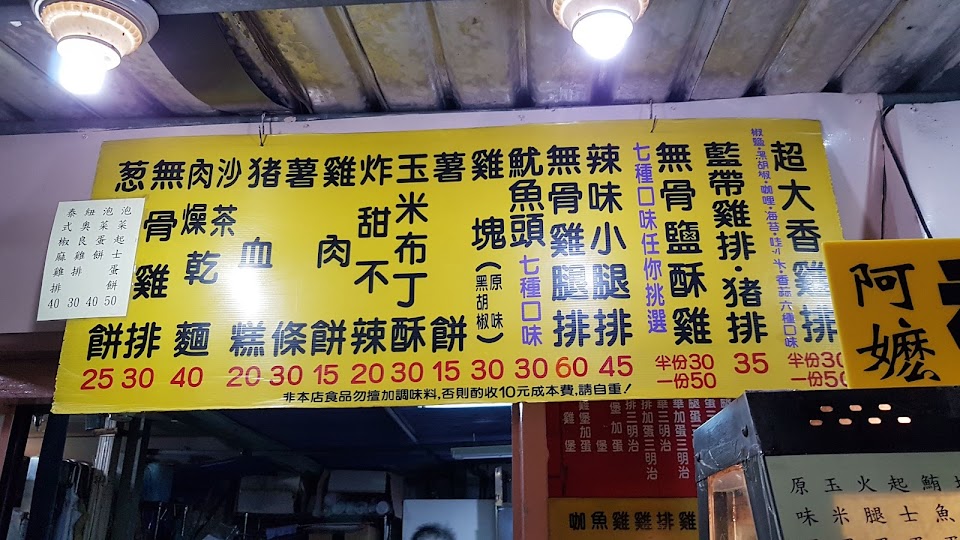 東西不是很精緻,環境當然不是很理想,但是真的夠便宜,阿姨還給我們加了料!半個雞排30元,裡面還加了幾塊鹽酥雞和甜不辣!