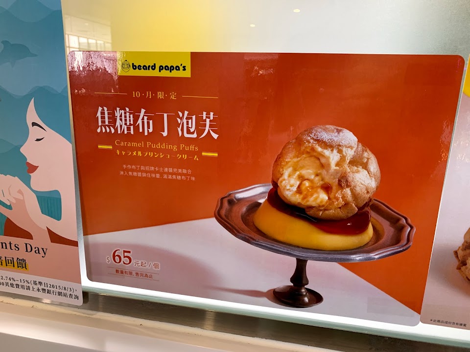 我喜歡beard papa’s 泡芙,因為吃起來奶油最新鮮。我點的是餅乾泡芙清香乳酪口味(NT$70)和原味泡芙原味香草口味(NT60)。內餡不會太甜外皮很脆CP質高,還會再回來買喔。