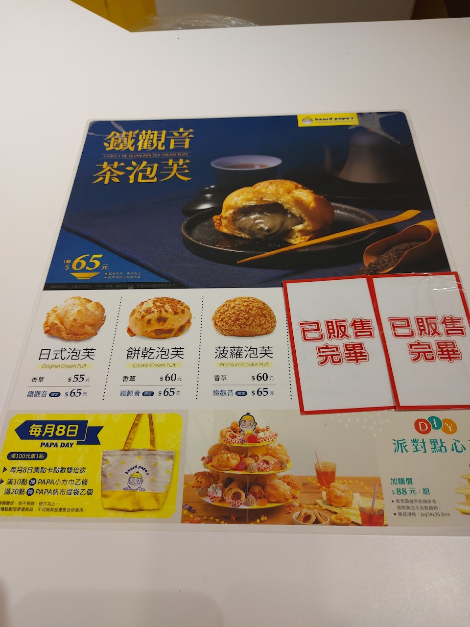 帶我爸去買泡芙 老人家眼睛不好 看菜單決定比較久 不知道是在不耐煩什麼 ^_^?
