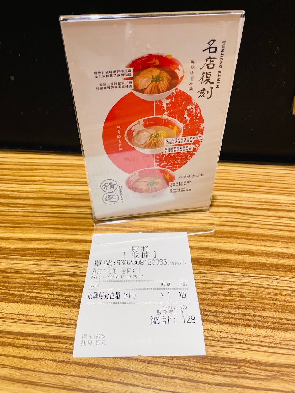干貝豚骨來的時候干貝泥是冰的,黑蒜沒有味道,唐揚雞外皮超級硬,價位100多吃起來像30-40元的,不推CP值很差,店員的臉每一個都像欠幾百萬一樣有夠臭