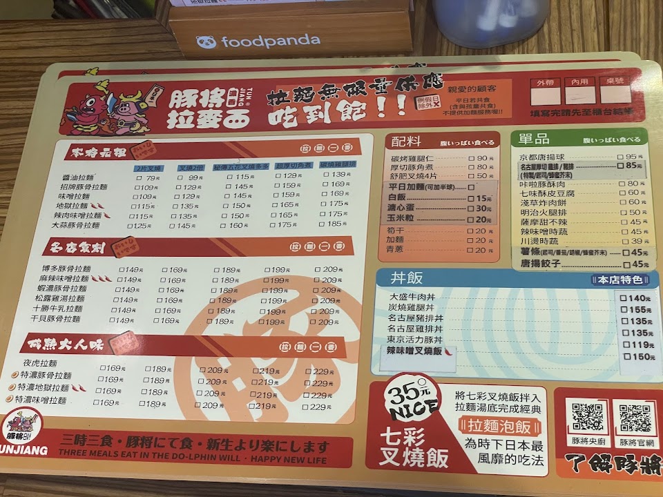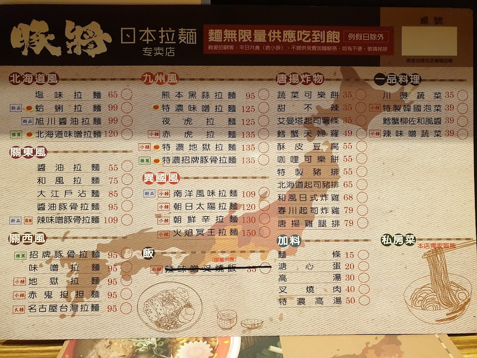 2024最新在地推薦餐廳的菜單_豚將日本拉麵-台中梧棲店的菜單、圖片