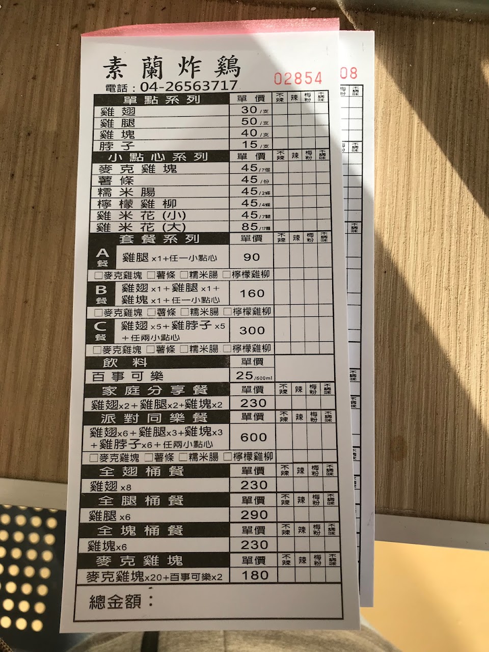 2024最新在地推薦餐廳的菜單_素蘭炸鷄 中央店的菜單、圖片