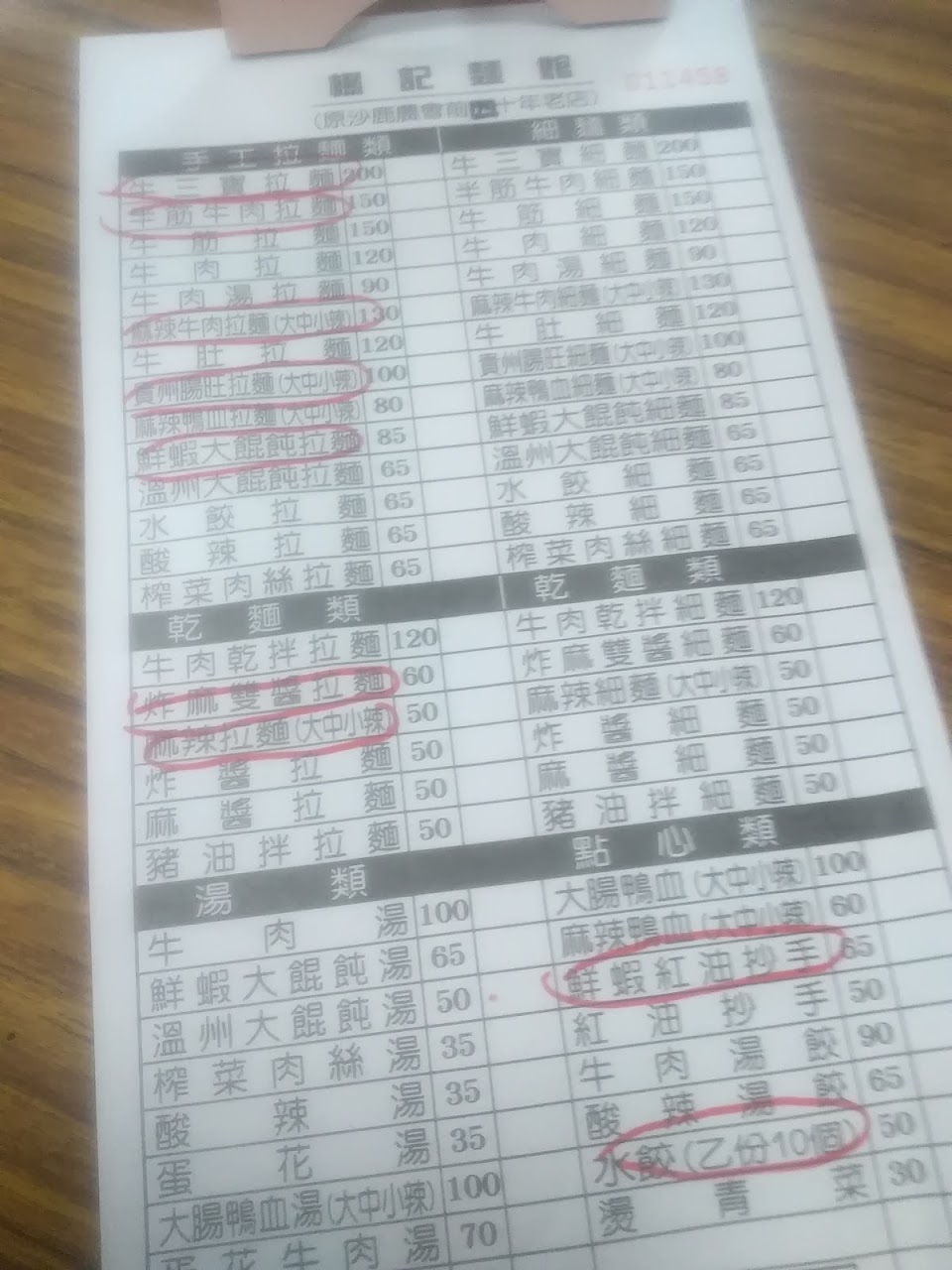 錢還收高單價的那一部分,單子上明明畫的是麻辣牛肉細麵,拿回來是麻辣鴨血細麵,