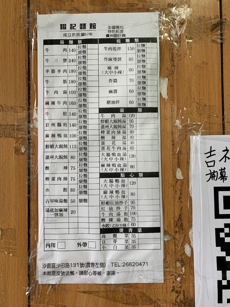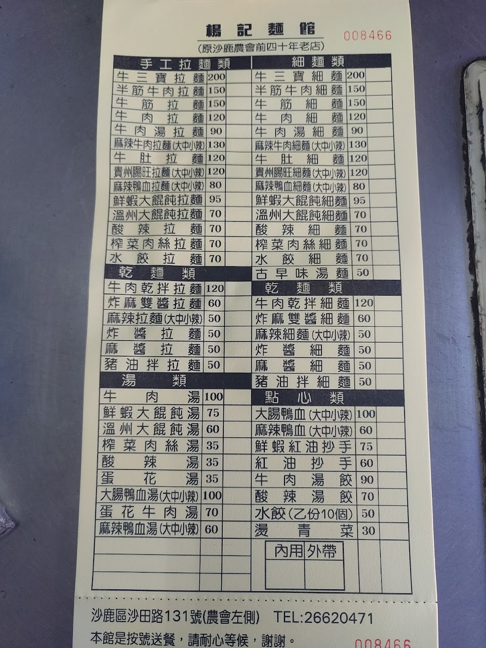 2024最新在地推薦餐廳的菜單_楊記麵館的菜單、圖片