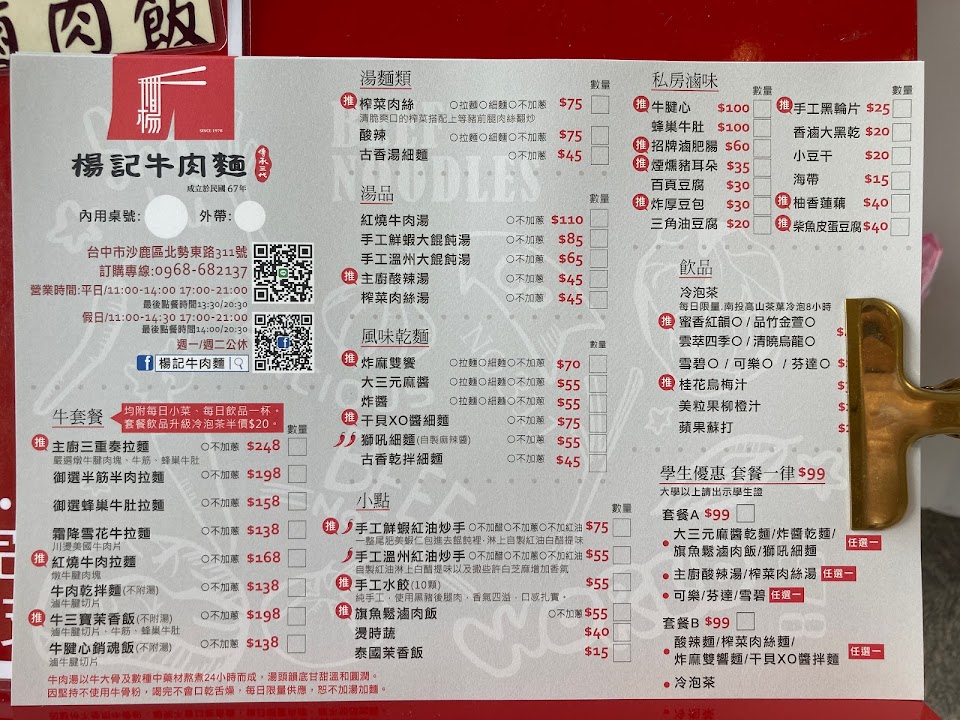 牛肉麵以外的麵類不能升級套餐,也是餐送來後才說,確定點單時卻沒澄清。顧客搞不清楚,不能確認菜單時說明嗎?非要送上菜時才說,我們也認了,也沒取消小菜飲料。