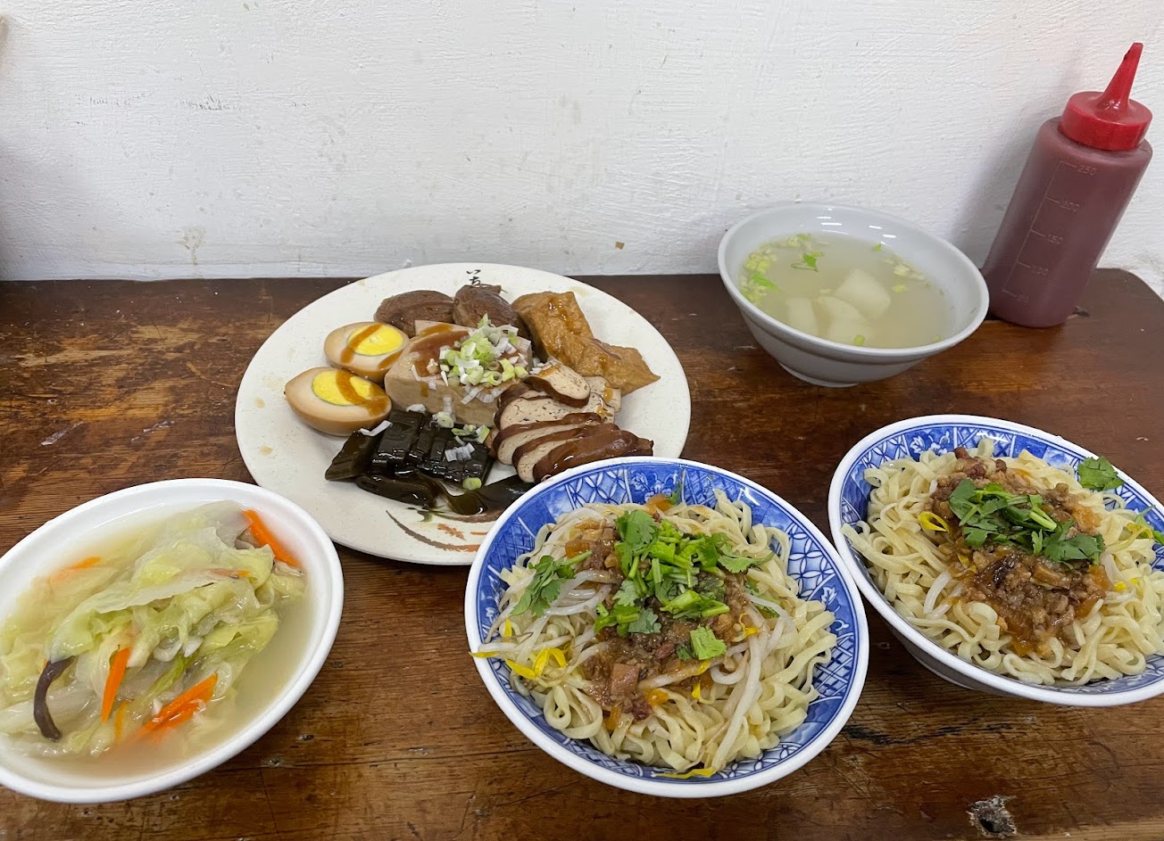 簡單的一餐卻如此美味 拉仔麵就是陽春乾麵 很古早味好好吃? 月見豬油飯略鹹 但口味意外的和諧 白菜滷清爽好吃 難怪是知名在地美食