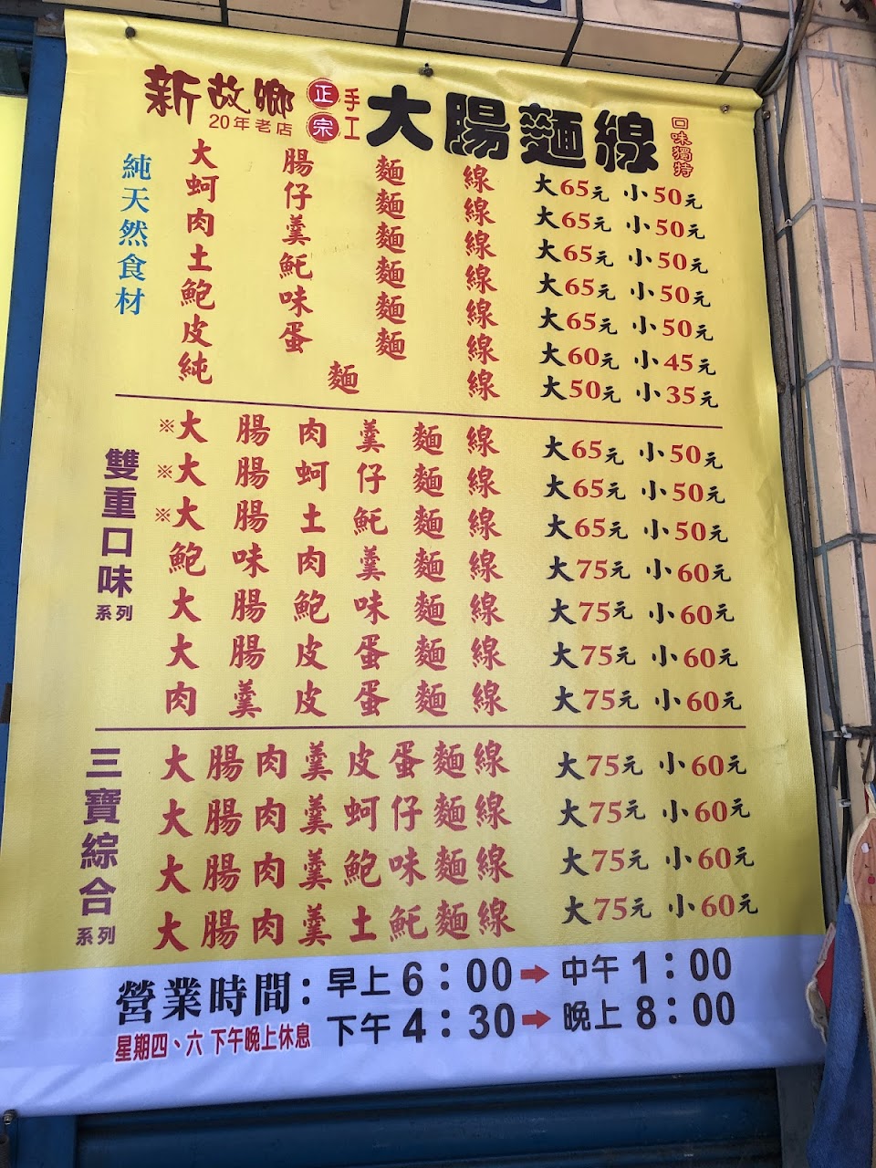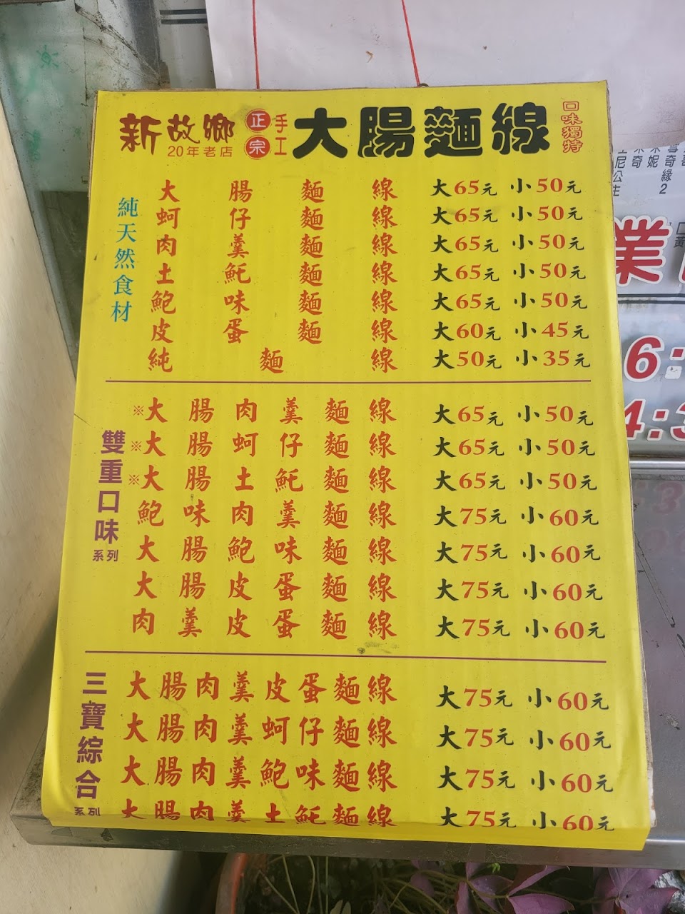 2024最新在地推薦餐廳的菜單_新故鄉正宗大腸麵線的菜單、圖片